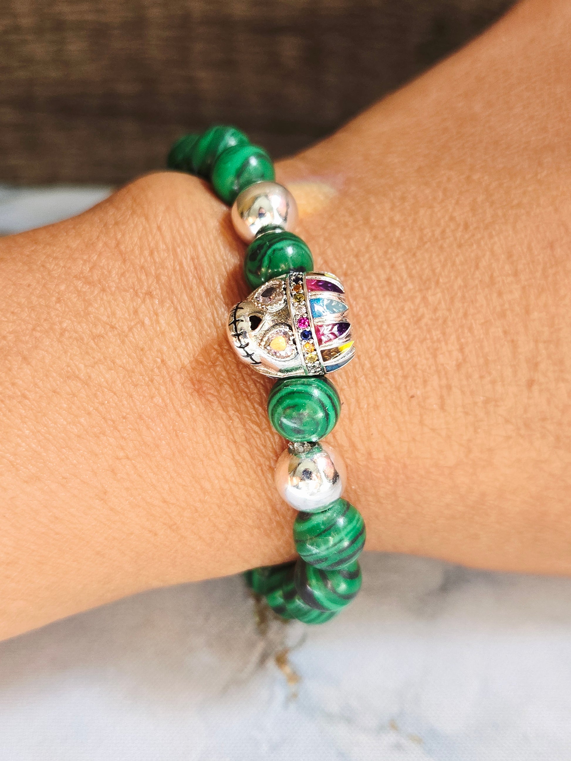 Malachite Skull Bracelet